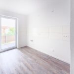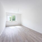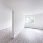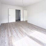 Der moderne Vinylboden in Holzoptik verleiht den Räumen eine warme Ausstrahlung, während die frisch renovierten Wände in weißer Raufasertapete für eine zeitlose Eleganz sorgen.